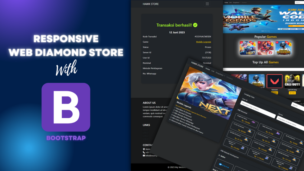 Hawk Store by Hawk Project is a Website Template Diamond Store or Game Top Up using Bootstrap, css and HTML only.